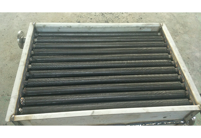 2.SRZ空氣換熱器主要由順空氣流向的三排散熱管束組成,叉排排列,SRZ散熱器翅片管均用Ф22× 2mm無縫鋼管繞制上16×0.5mm皺折鋼帶而成,呈螺旋狀,SRZ鋼制散熱器片距有5mm-大“D”,6mm-中“Z”、8mm-小“X” 三類,共三十八種規格;